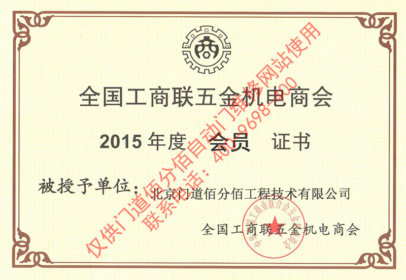 全國工商聯五金機電商會會員證書