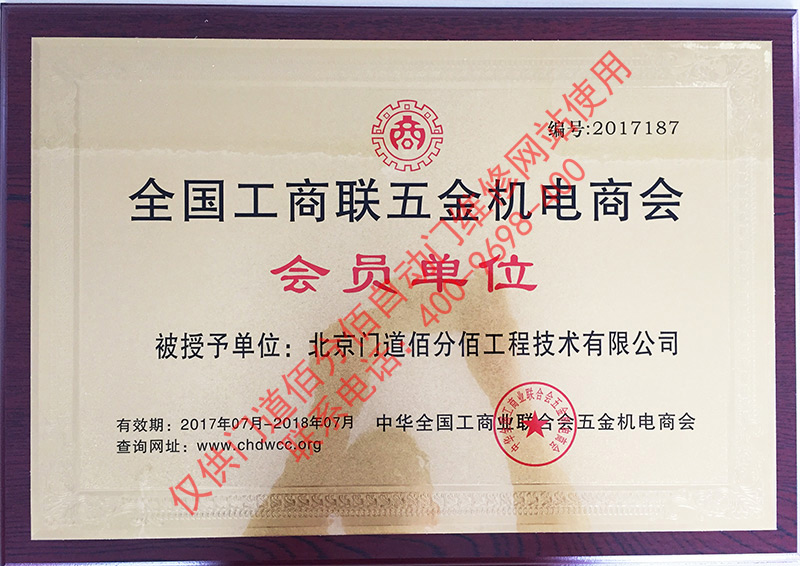 2017年門道佰分佰工商聯會員單位證書