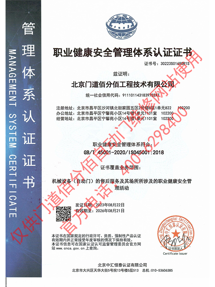 職業健康安全管理體系認證證書