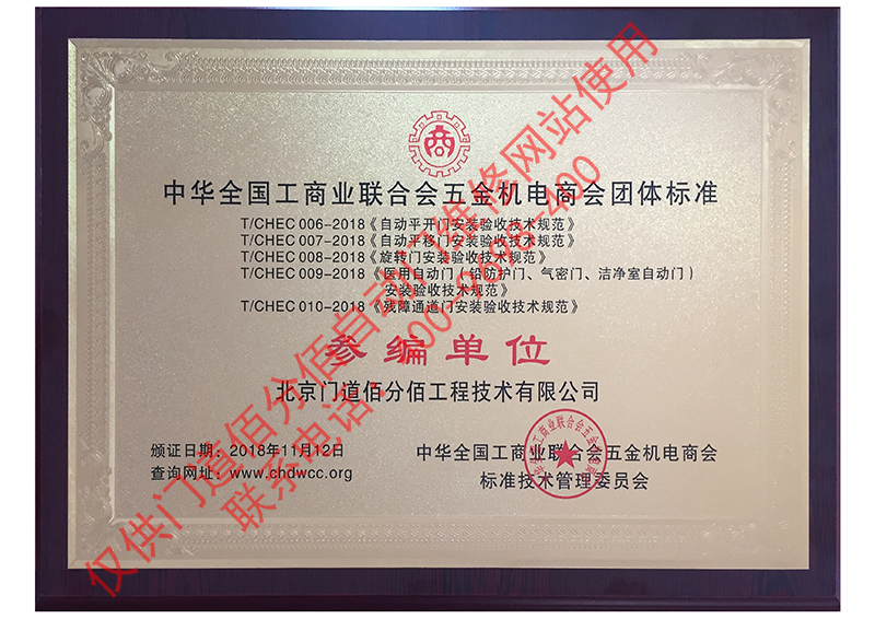 平衡門行業標準證書